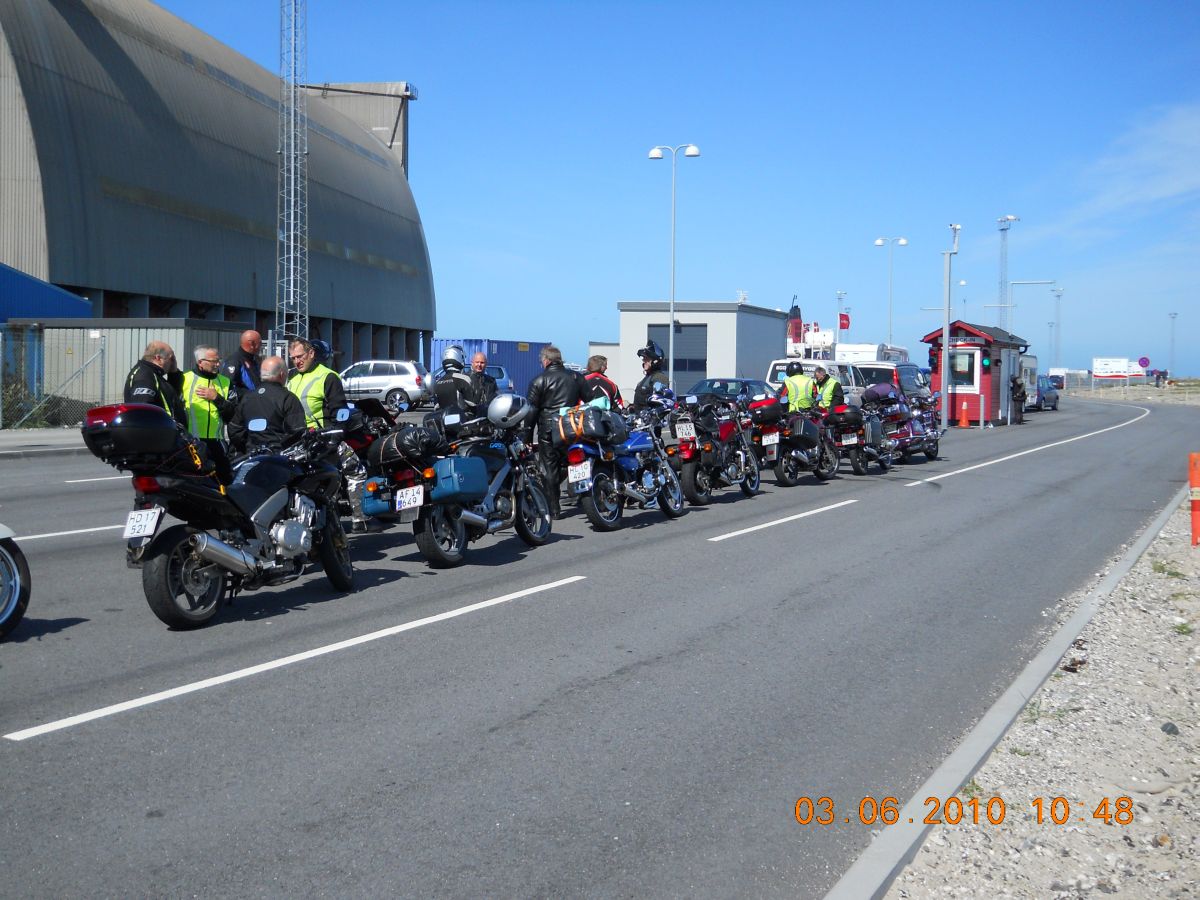 | Vi venter på færgen Fjone. |