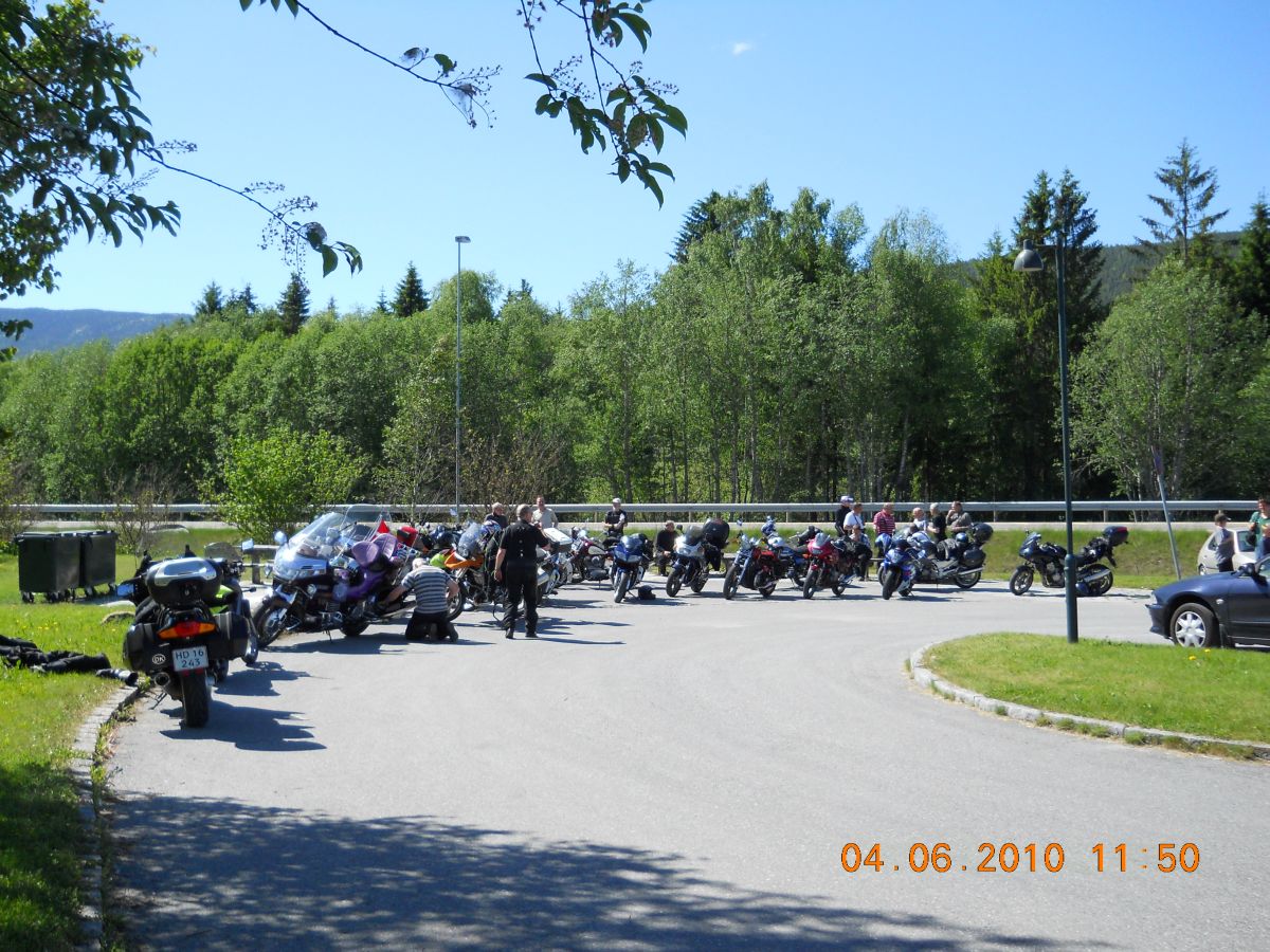 | Der skulle lige skrues lidt på en MC på p-pladen ved Heddal. |