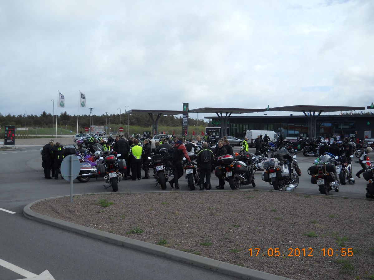 | Vi mødes med de andre tur deltagere ved den store tank lige inden Hirtshals. |