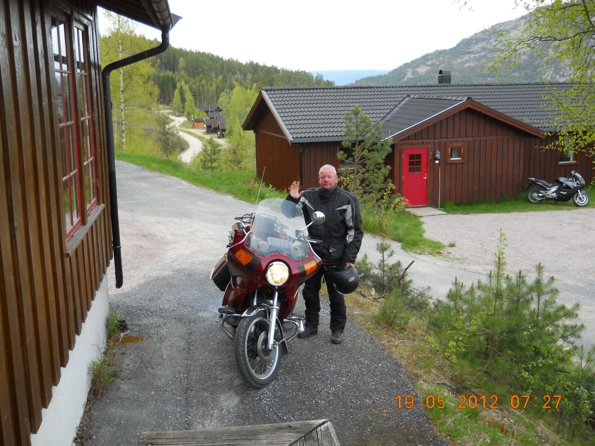 | Søndag er det tid at vende forhjulet hjemad. Vi holder pause i Åmli. |