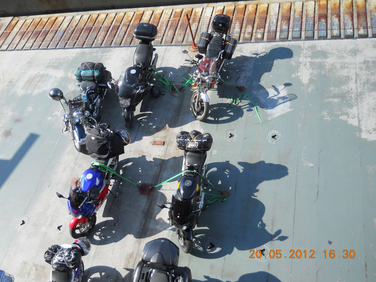 | Så er MC surret på dæk. |