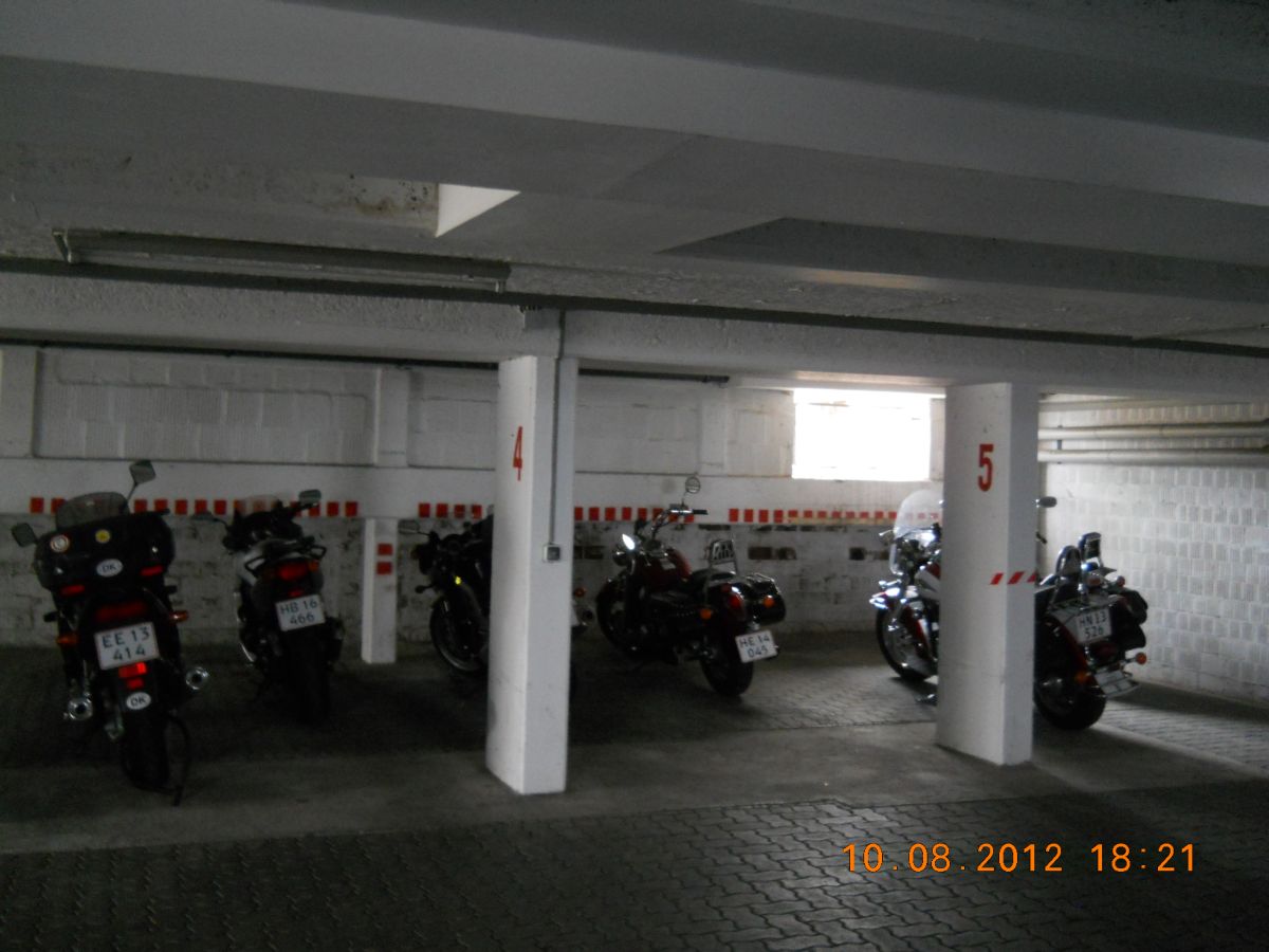 | Der er fin parkering i kælderen. |